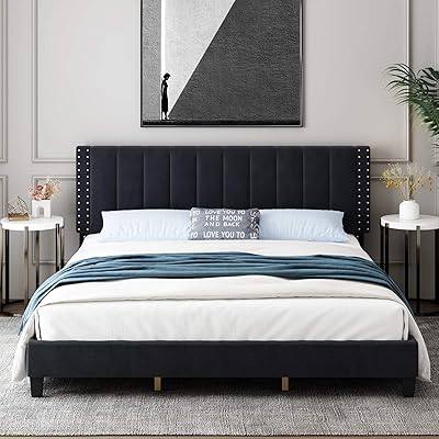 Buy Hifort King Size Bed Frame With Adjustable Headboard Upholstered Platform Bedframe Bedstead Mattress Foundation Wooden Slats Support No Box Spring Needed Easy Assembly Black Online In Indonesia B08xnwswfk