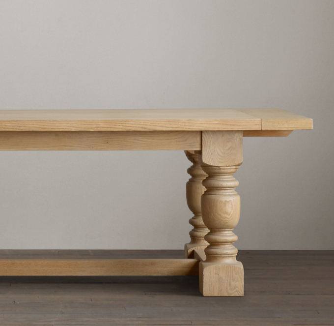 Plus you can make this table as long or as short as you want. 108 Extension Table 1930 s FRENCH FARMHOUSE DINING TABLE FEATURES An antique American table from the last century inspired our grandly scaled reproduction with baluster-style turned legs and low stretcher beams to support the planked top. Shown in Ash French Oak.