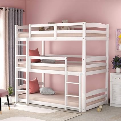 Wood Triple Bunk Beds For Kids Toddlers Twin Size 3 Bunk Bed Frame With Built In Ladders Can Be Divided Into 3 Separate Beds White Amazon In Furniture