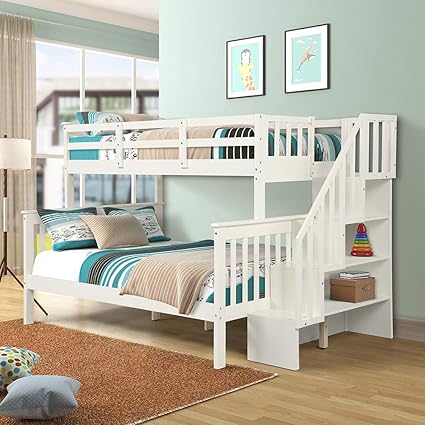 This Kids Twin over Full White Bunk Bed is made from solid Finland pine wood which is tough and durable and also allows for the perfect white finish ensuring a bunk that will stay like new for many years. Lana is a solid painted pine bunk bed available in either white or grey. The Hannatou Small Space Bunk Bed fits one standard twin size mattress and one standard full-size mattress sold separately and the maximum mattress height for the top bunk is 6.