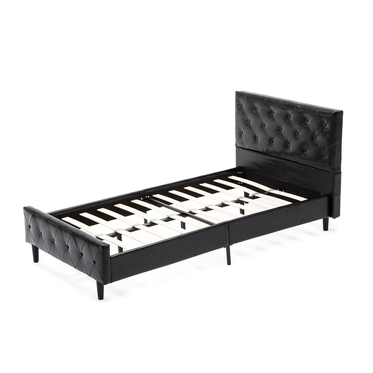 Mecor Upholstered Faux Leather Platform Bed With Solid Wooden Slat Support And Button Tufted Headboard And Footboard Twin Size Black Amazon In Home Kitchen