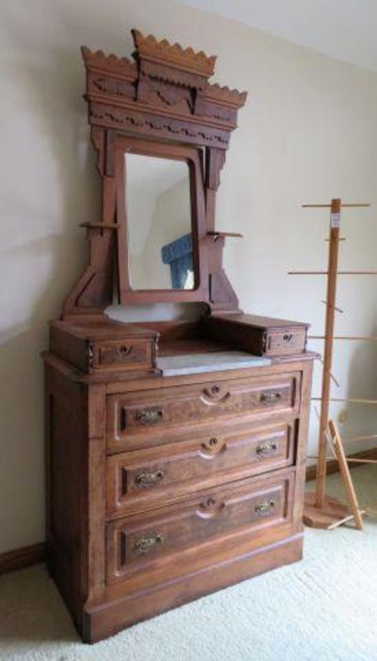 Antique Walnut Victorian Dresser W Mirror And Marble Top Beautiful Long Valley Traders